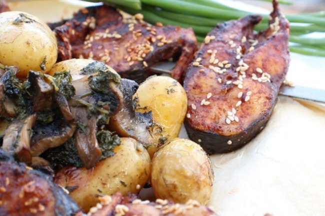 Пеленгас на углях с молодой картошкой и грибами в фольге - «Второе блюдо»