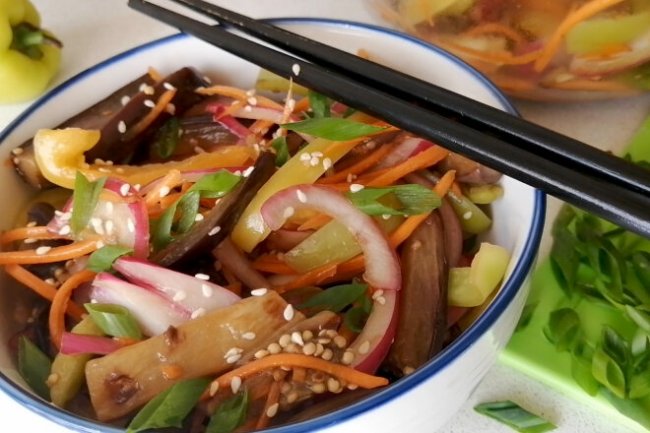 Баклажаны по-корейски с болгарским перцем и кунжутом - «Второе блюдо»