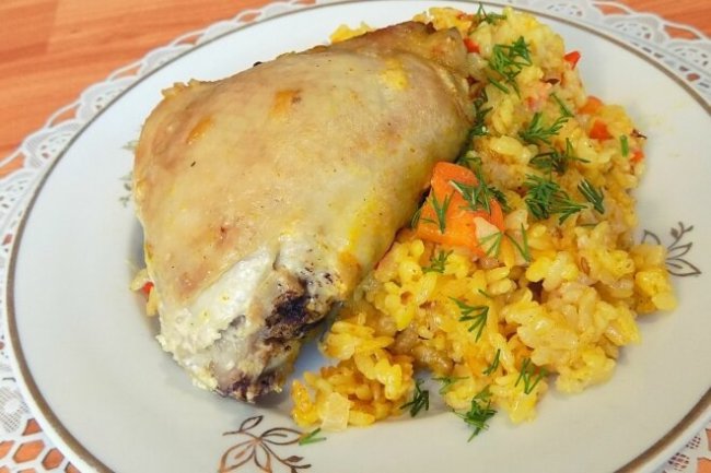 Готовим курицу с рисом в разогретой до 200 градусов духовке примерно 45-50 минут.