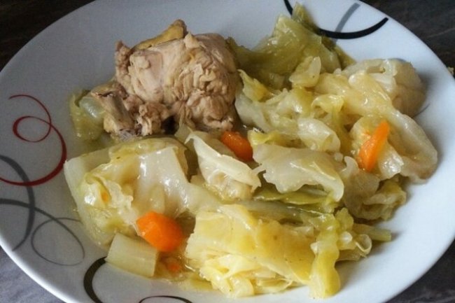 Залить ингредиенты горячей водой, не доверху, придавить продукты тарелкой, тушить в течение часа.