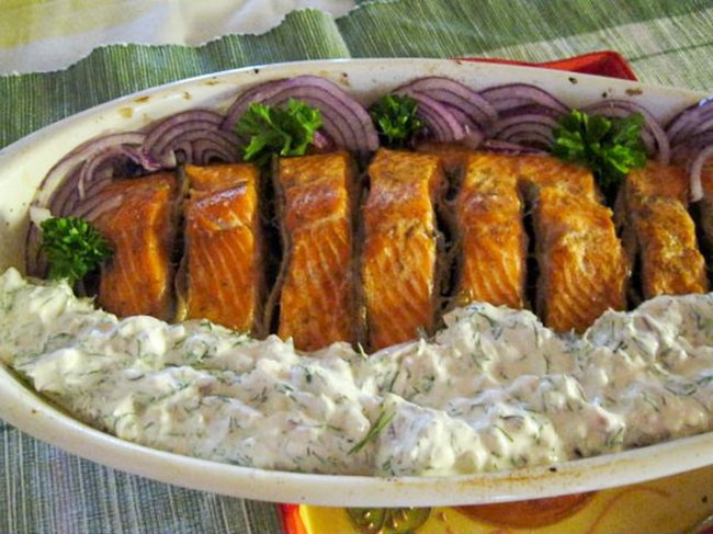 Форель с анчоусами и краснолуковым дзадзики - «Второе блюдо»