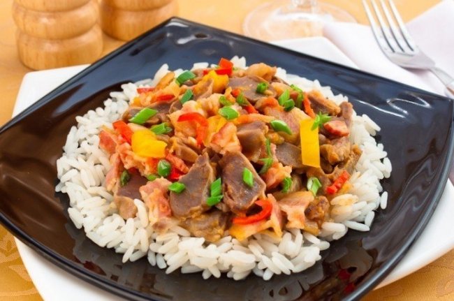 Куриные желудки, жаренные с беконом и овощами - «Второе блюдо»