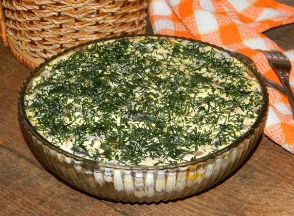 Сверху салат посыпаем зеленью и убираем в холод настояться.
