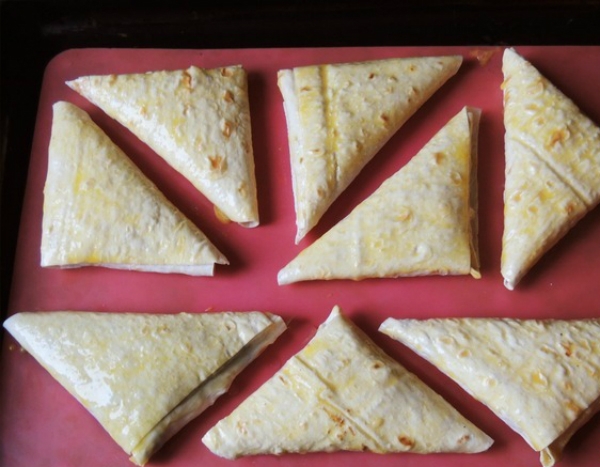 Закусочные треугольники из лаваша без труда можно и на сковороде поджарить, но тогда блюдо получится намного калорийнее.
