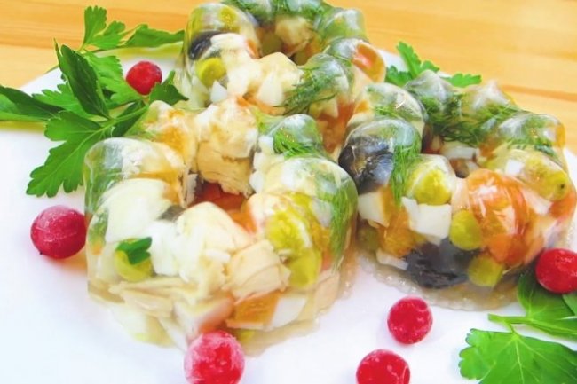 Заливное из курицы с маслинами и зеленым горошком - «Закуски»