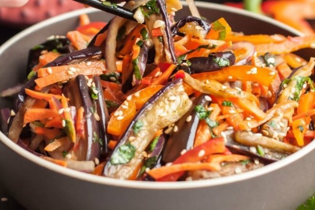 «Хе» из обжаренных баклажанов с болгарским перцем - «Закуски»