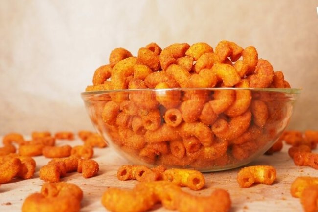 Перемешать макароны со специями. Чипсы из макарон готовы!