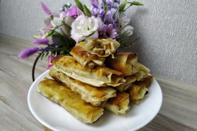 Рулетики из теста фило с курицей и шампиньонами - «Закуски»