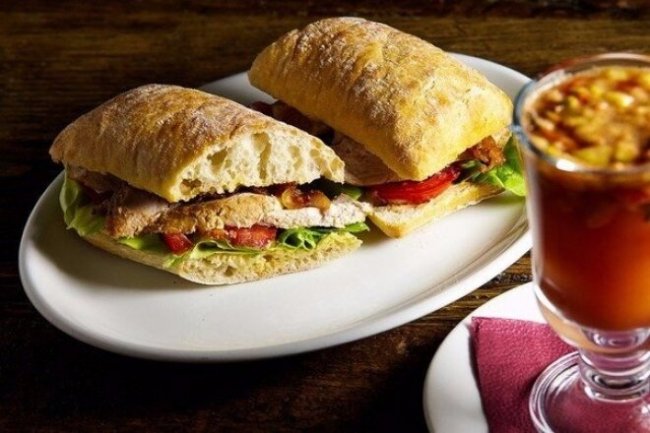 Готовый сэндвич разрезать на две части.