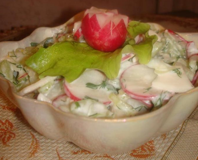 Шаг 6 К полученной заправке добавить сельдерей, редиску, яблоко.