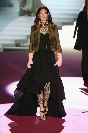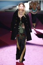 Еще один ключевой тренд коллекции – стиль милитари. Это бушлаты, военные камзолы и армейские штаны с большими накладными кармашками. И чтоб добавить очередной штришок к данной и без того насыщенной коллекции, дизайнеры дополнили наряды ясными высочайшими перчатками и роскошными сумочками.