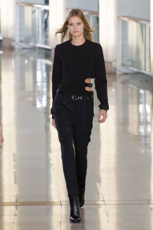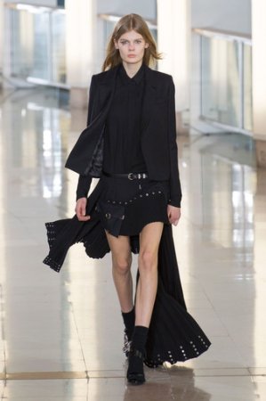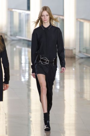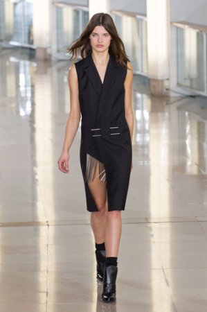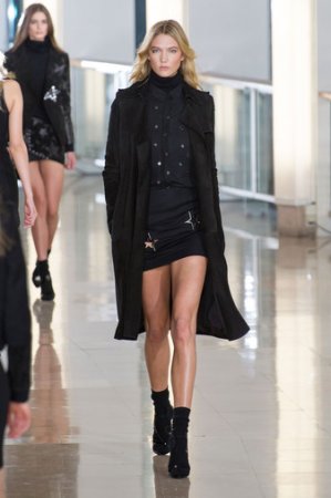 С первых же выходов стало светло, что Ваккарелло решил создавать в рамках обыкновенной для себя концепции: сексапильные провокационные наряды, но без какой-нибудь вульгарности и непристойности. Акцент он сделал на асимметричный крой, а основным цветом заявил темный. Как постоянно, проэктировщик не сумел обойтись без кожи, отчего модели смотрелись еще наиболее дерзостно. Ключевым принтом сезона стали большие звезды, которые можнож было узреть то на топе, то на платьице.