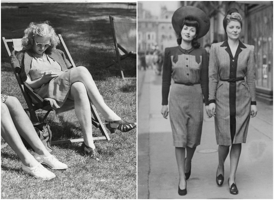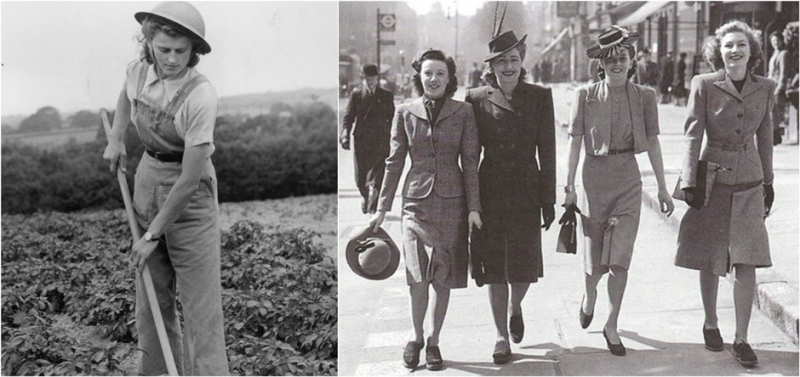 Очевидно, что война упрощает моду, делает ее более практичной. Элегантные и женственные фасоны 30-х годов бесследно исчезают, носки приходят на смену шелковым чулкам, тюрбаны заменяют практичные косынки, в комбинезонах и штанах своих мужей женщины уходят на фабрики и заводы. Тем не менее во времена Второй мировой войны возникает множество явлений и трендов, продиктованных экономией и протестом.