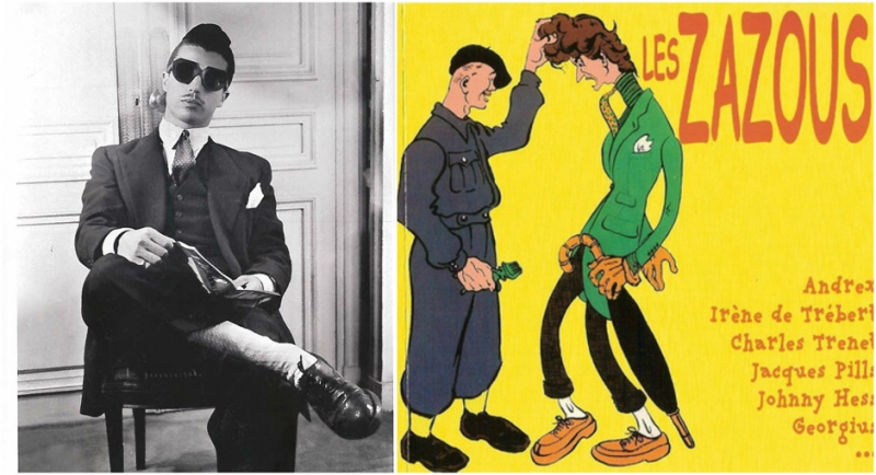 Впервые термин «зазу» был использован в 1938 году во Франции в задорной песне Johnny Hess «Je suis swing». Огромное влияние на зазу оказала музыка джазмена Кэба Кэлловэя и американский свинг. Юноши зачесывали волосы назад на модный манер или сооружали что-то вроде кока. Носить они предпочитали удлиненные пиджаки, узкие штаны с огромными отворотами, а галстук завязывали особенным способом, называя небольшой узел «арахисовым». Во время оккупации зазу активно выражали свой нонконформизм и отрицали господствующий режим. Когда евреев во Франции обязали носить на одежде вышитую желтую звезду, зазу также стали носить ярко-желтые звезды с вышитыми надписями «Зазу» или «Свинг». Нередко бывали случаи, когда дерзких молодых людей останавливали и даже отправляли в лагерь Дранси. Впрочем, после проверки их отпускали.