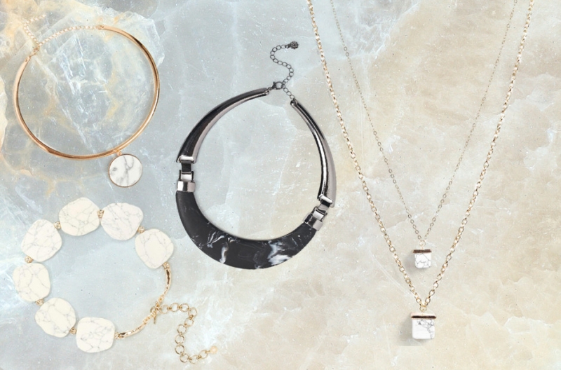 Тренды на украшения — явление забавное: то у дизайнеров просыпается любовь к минимализму, то к сиянию и роскоши во всех ее проявлениях. В ситуации с мрамором бренды будто в один голос решили быть сдержанными и правильно поступили. Изящные трещинки мрамора смотрятся особенно удачно с тонкими цепочками из серебра и золота. Носить подобные предметы определенно стоит в комплекте с другими украшениями. Фактура мрамора — очень благородна и легко уживается с бижутерией или ювелирными украшениями.