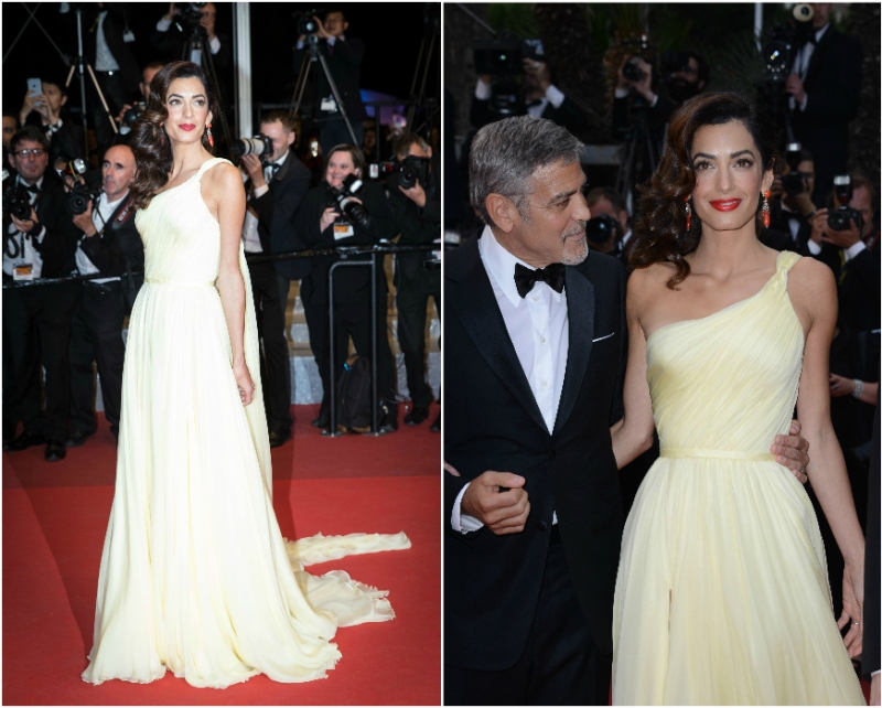 Супруга Джорджа Клуни Амаль Клуни блистала в объективах фотографов в платье нежного желтого цвета от Atelier Versace. Длинный шлейф ее прекрасного наряда еще долго будет стоять перед глазами.