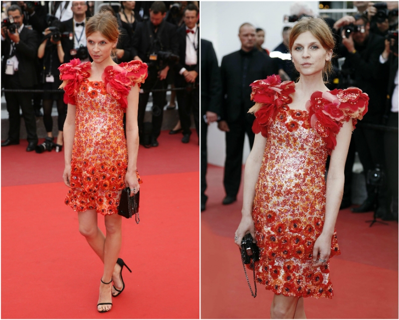 Для церемонии закрытия актриса Клеманс Поэзи выбрала короткое «маковое» платье от Chanel. В этом образе она похожа на лесную фею.