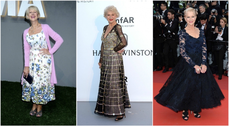 О британской актрисе русского происхождения Хелен Мирен часто с восхищением говорят, что она стареет красиво. И действительно, она не одержима погоней за молодостью, а ее позитивному отношению к возрасту, как и жизнерадостному стилю, стоит поучиться! Даже в повседневной одежде актриса выбирает яркие цвета: пиджак цвета фуксии или ярко-синие брюки для нее вполне будничные вещи. Для торжественных выходов Хелен почти всегда надевает элегантные платья. Причем, как она признавалось, ее очень расстраивает, что дизайнеры делают мало платьев с длинным рукавом. «Я не хочу носить жакеты с платьем и меня раздражает, что так трудно найти что-нибудь с рукавами».