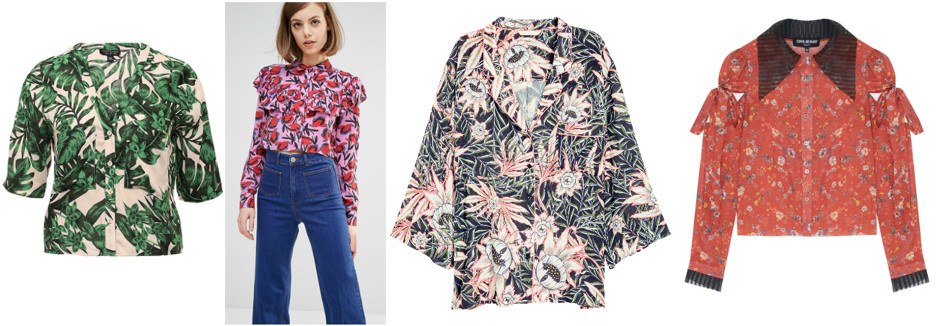 В ситуации с блузой или рубашкой с флористическим принтом можно ограничиться и скромной россыпью незабудок или одуванчиков, но если перед вами необычная вещь с открытыми плечами, бантами, оборками и другими милыми деталями, точно стоит выбрать именно такую рубашку. В этом году самый популярный мотив — тропики. Стоит ли говорить, что и цветы на вещах «распустились» соответствующие? Носить весь этот сад-огород нужно смело! Не бойтесь разных принтов и фактур.