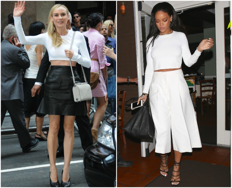 Диана Крюгер и Рианна сочетают кроп-топ с высокой талией и каблуками.