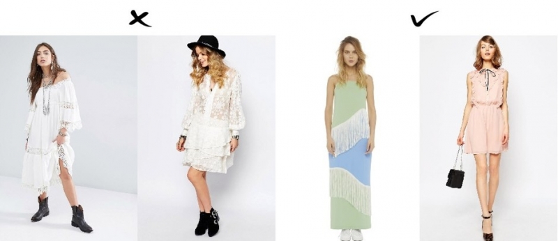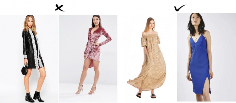 На свадьбе друзей или родственников нужно выглядеть нарядно, но при этом не перещеголять невесту. Это не ваш день, и вы играете даже не вторую роль (она отведена жениху). Предлагаем несколько правил, которые стоит учитывать, собираясь на свадьбу.Уважайте пожелания невесты Платья Asos Давайте взглянем правде в глаза, свадьба — праздник только одного человека, а именно невесты. Она готовила это мероприятие несколько месяцев, подгоняла себя под то самое, идеальное платье, ругалась с организаторами и искала самое красивое место для проведения торжества. С вашей стороны будет, мягко говоря, невежливо заявиться на ее торжество в ярко-желтом комбинезоне, когда вас просили о бирюзовом цвете. Даже если вы ненавидите бирюзовый всеми фибрами души, будьте добры и уважьте невесту. На собственной свадьбе вам же зачтется. У этого правила есть небольшое послабление: если невеста не является вашей близкой подругой, и вы на свадьбе на правах дальней родственницы или сопровождаете кого-то, то дресс-код, заявленный в приглашении, можно в принципе не соблюдать. В любом случае не впадайте в крайности: если в приглашении указаны сдержанные цвета, а вы заявитесь в красном платье, то будете делить внимание вместе с невестой. Не надевайте белое Платье с бахромой So Easy; розовое платье Asos. Любая белая одежда на свадьбе — запрет. Просто смиритесь с этим. Бохо и кроше, бэйби-дол, платья с запахом или баской, комбинезон, смокинг или брючный костюм. Если белый цвет в вашем образе основной, то считайте — вы на глазах у всех гостей плюнули невесте, если и не в душу, то на ее платье. Хотите светлые цвета? Пожалуйста! Цветовая палитра не вертится вокруг одного белого: кремовый, лимонный, беж, жемчужный. Кстати, даже если невеста не в белом платье, а в серо-буро-малиновом комбинезоне, вы все равно не должны надевать одежду белого цвета. Ассоциативный ряд «свадьба-невеста-жених-белый цвет» может сработать в голове у какого-нибудь подвыпившего дальнего родственника молодых, который никогда раньше не видел невесту, и вот вас уже принуждают целоваться с женихом под крик «Горько!» Неловко получится. Забудьте о джинсах хоть в этот день Костюм Asos; топ и брюки Osome2Some. Считается, что джинсы — это такая универсальная вещь, в которой хоть в театр, хоть по дрова, хоть на работу, хоть на праздник. Безусловно. Но только не на свадьбу! Кстати, правило касается и мужчин, так что хотя бы попытайтесь уговорить своего спутника переодеться в брюки. Разумеется, есть различные фантазийные свадьбы, куда можно прийти хоть голым, но если речь идет о торжестве, которое невеста готовила с того момента, как ей на палец надели кольцо (а то и дольше), то оставьте джинсы дома. Все ваше существо протестует против платьев и юбок? Брюки и красивый пиджак вам в помощь. Черное платье — не табу Платье с открытыми плечами Charlie; платье в горох 12storeez. Сегодня черное платье вполне допустимо на таком торжестве, как свадьба. Главное — это правильно подобранная длина, чтобы никто не сравнил вас с колдуньей Малифисентой, испортившей день рождения прекрасной Авроры. Итак, глухое платье в пол не годится, провокационное мини тоже, а вот сдержанное платье до колена с ниткой жемчуга, красивым клатчем, туфлями (может быть, яркого цвета) — образ, который впишется в праздник. Еще один вариант — черное платье с каким-нибудь красивым прин