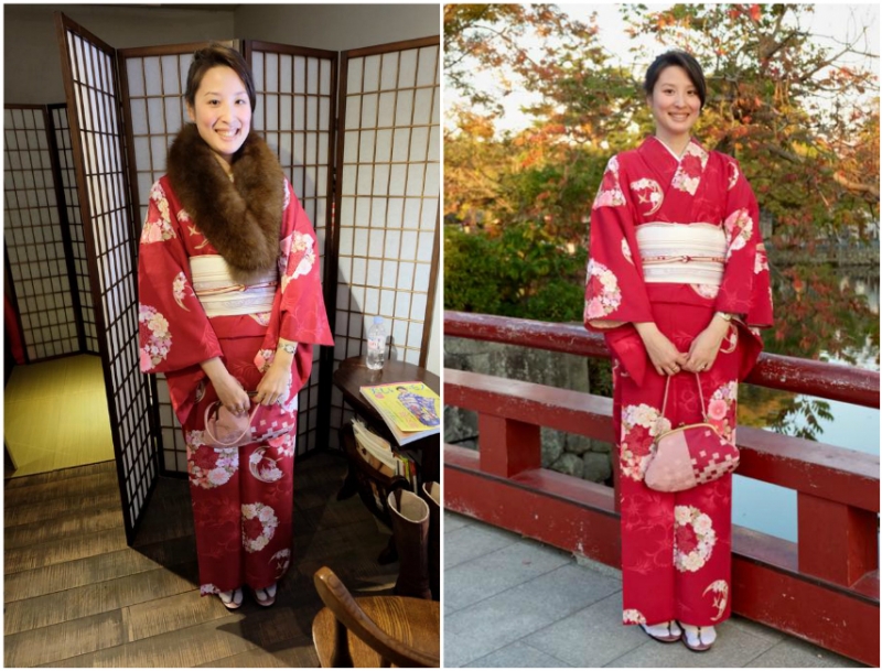 Японцы всегда любили и продолжают любить кимоно. Существует множество моделей, особенно для женщин. У нас все еще есть много особенных поводов, куда мы надеваем кимоно. Например, 7.5.3 (праздник взросления), двадцатилетие, день выпуска из университета, ну и много других торжественных дней, вроде свадебной церемонии. Также мы надеваем кимоно во время посещения храмов в Новый год.