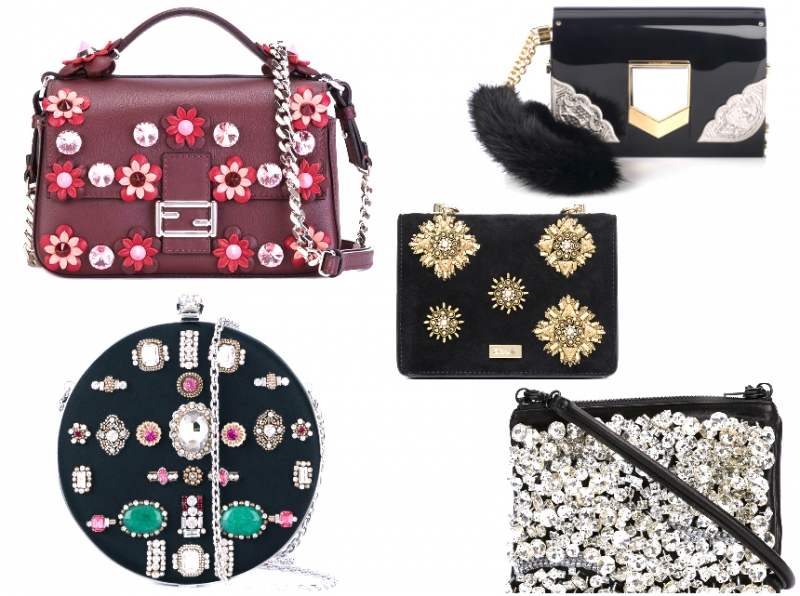 Если ваша сумка похожа на арт-объект авторства Джеффа Кунса, то вы определенно не ошиблись в выборе аксессуара. Маленькие сумки и клатчи должны быть усыпаны россыпью кристаллов, бусин, цветов, пайеток и разных блестяшек. Дорого-богато — главный принцип, которым нужно руководствоваться, выбирая аксессуар на вечер. Стоит ли говорить, что при наличии такой яркой детали платье и туфли должны быть сдержанными? Либо вы можете примерить образ сразу из двух эпох: джазовые 20-е с их платьями, расшитыми стеклярусом, или не менее веселое диско из 70-х.