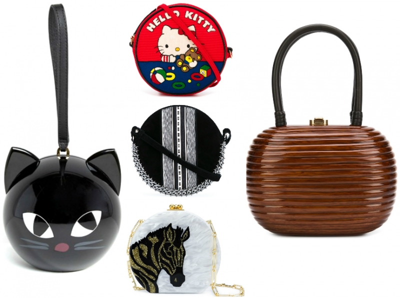 Шарообразные и круглые сумки, может, и не самые практичные, но точно очень необычные аксессуары. Дизайнеры обращаются к этой несколько нестандартной форме и используют такие материалы, как фетр, пластик, дерево и перламутр. Кстати, тема анималистичных сюжетов воплощена и здесь: нам опять предлагают семейство кошачьих и других братьев наших меньших.