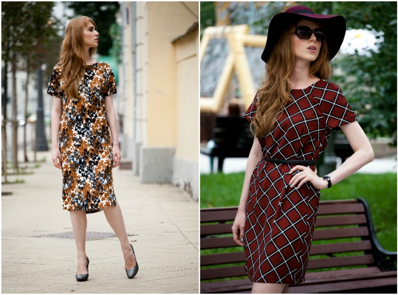 Существует немало приемов, с помощью которых можно немного увеличить размер бюста. Объемный бант, декор вроде жабо, блузы и платья свободных силуэтов. Мы решили использовать оптические иллюзии, выбрав приталенное платье-футляр со сложным геометрическим рисунком. Контрастные вставки по бокам делают силуэт немного стройнее, а контрастные цвета на груди визуально увеличивают ее.