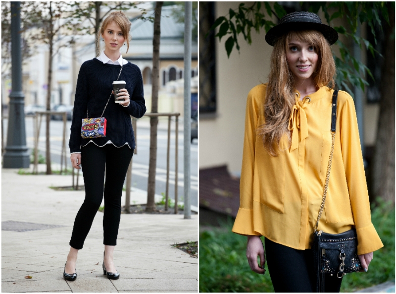 Если ваша проблема — широкие плечи, попробуйте примерить блузы из тонких материалов, например, из шелка или шифона. Широкие, свободные рукава, расслабленный силуэт, аккуратная деталь вроде узкого банта замаскируют широкие плечи. А вот от модных свитеров с воротничками и манжетами навыпуск лучше отказаться: округлый вырез, из которого выглядывает рубашка, создает оптический эффект, увеличивающий линию плеч.