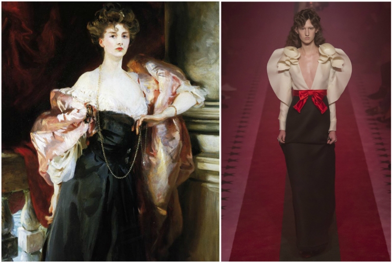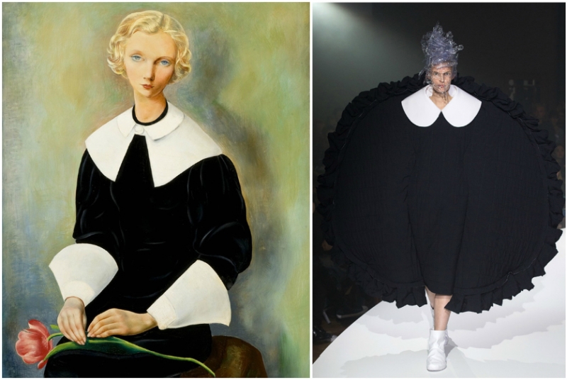 «Портрет миссис Буш». 1929. Тамара де Лемпицка/Показ Balenciaga. «Портрет леди Хелен Винсент». 1904. Джон Сингер Сарджент/Показ Gucci.«Молодая шведка Ингрид». 1932. Моисей Кислинг/ Показ Comme des Garcons.