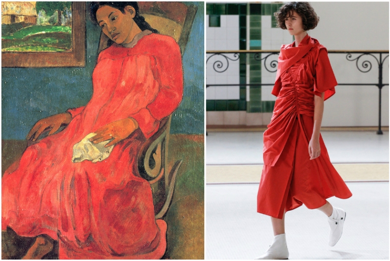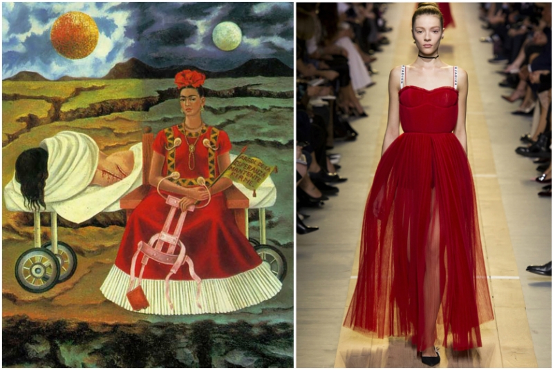 «Дерево надежды, стой прямо!». 1946. Фрида Кало/ Показ Christian Dior. «Женщина в красном». 1891. Поль Гоген/ Показ Christophe Lemaire.«Музыка». 1910. Анри Матисс. Показ Mugler.