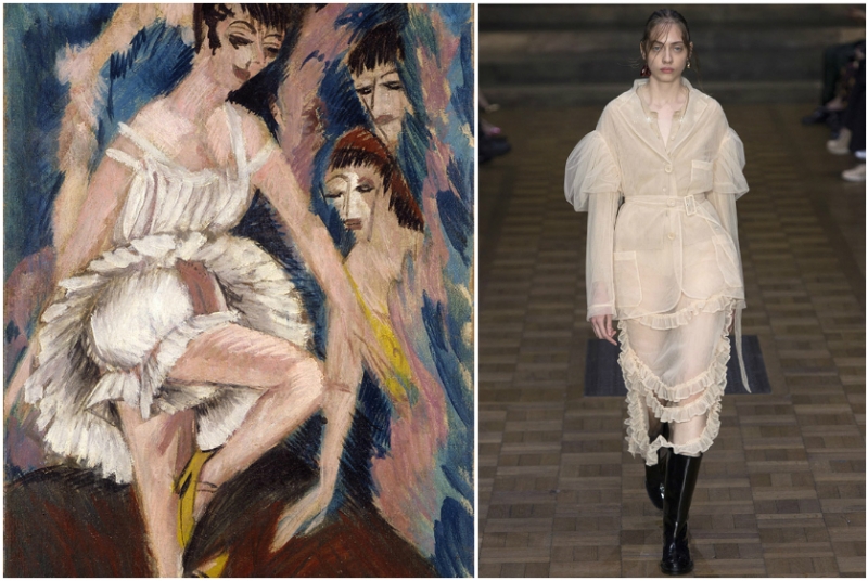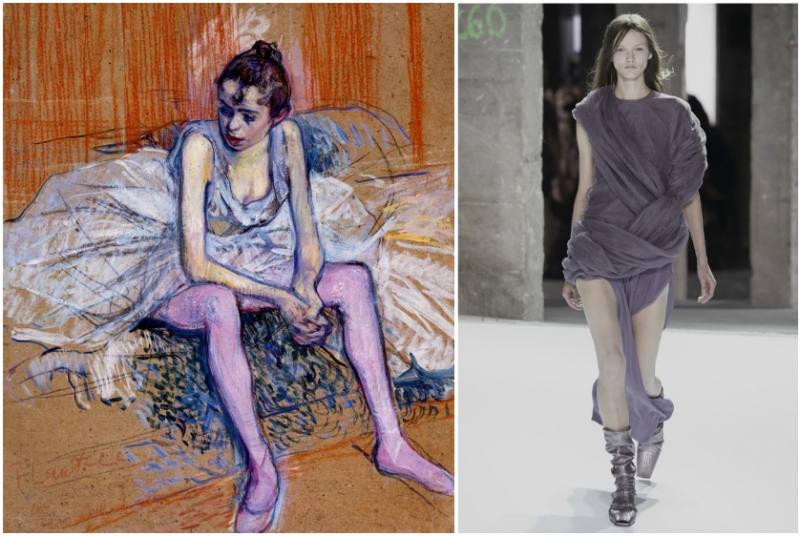 «Tanzerin». 1914. Эрнст Людвиг Кирхнер/ Показ Simone Rocha.«Сидящая танцовщица в розовом трико». 1890. Тулуз-Лотрек/ Показ Rick Owens.