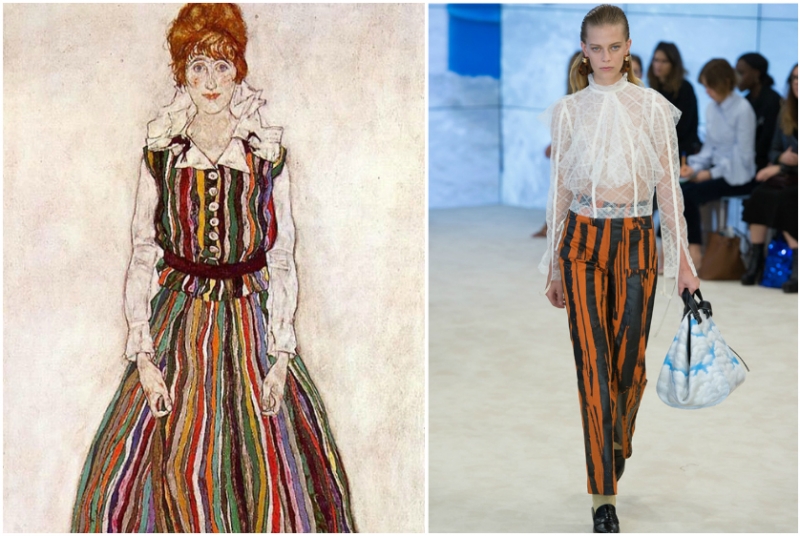 «Портрет Эдит Шиле в полосатом платье». 1915. Эгон Шиле/ Показ Loewe.«Голова женщины». 1935. Пабло Пикассо/ Показ Versace.