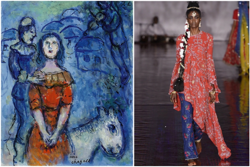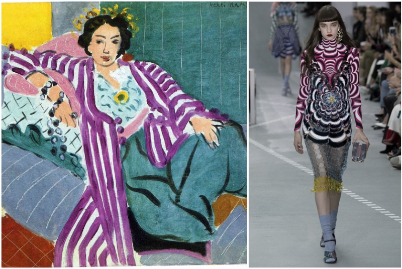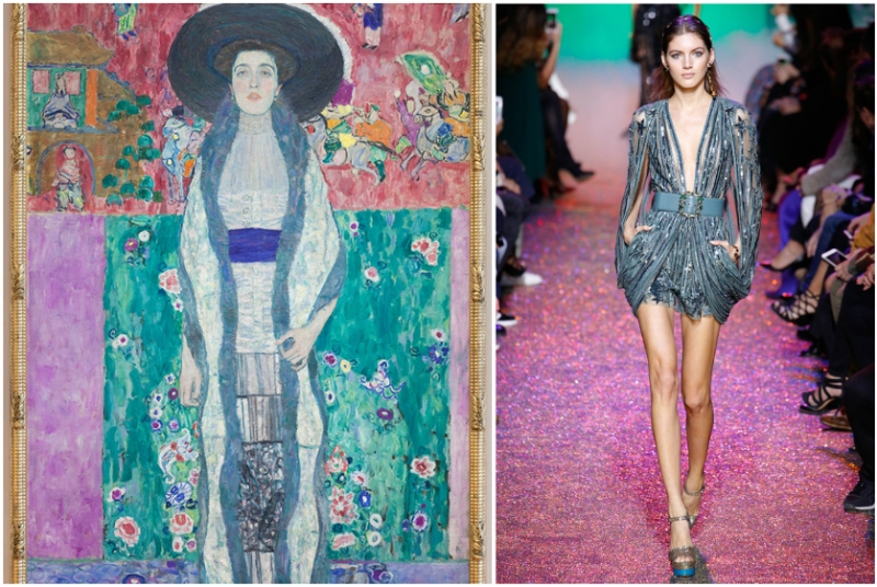 «Портрет Адели Блох-Бауэр II». 1912. Густав Климт/ Показ Elie Saab. «Маленькая одалиска в фиолетовой одежде». 1937. Анри Матисс/ Показ Mary Katrantzou.«Женщина в красном платье». Марк Шагал/ Показ Ashish.