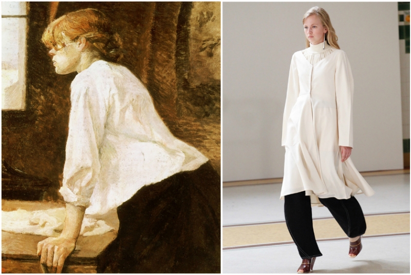 «Портрет герцогини де Ла Саль». 1925. Тамара де Лемпицка/ Показ Ann Demeulemeester. «Прачка (Сюзанна у окна)». 1884. Тулуз-Лотрек/ Показ Christophe Lemaire.«Женщина в черном в Венеции». 1919. Жан Габриэль Домерг/ Показ Jacquemus.