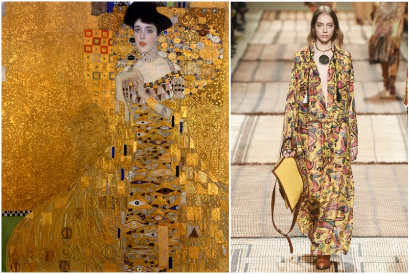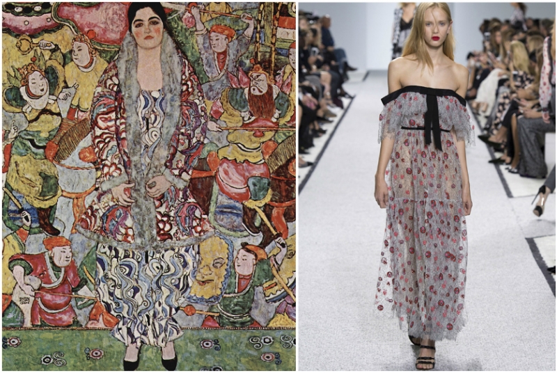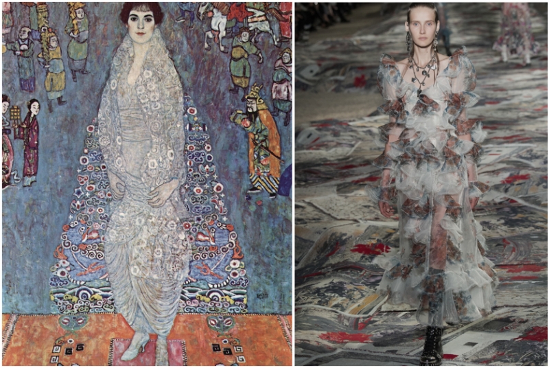 «Портрет Адели Блох-Бауэр I». 1907. Густав Климт/ Показ Etro.«Портрет баронессы Элизабет Бахофен-Эхт». 1914—1916. Густав Климт/ Показ Alexander McQueen.«Портрет Фредерики Марии». 1916. Густав Климт/ Показ Giambattista Valli.