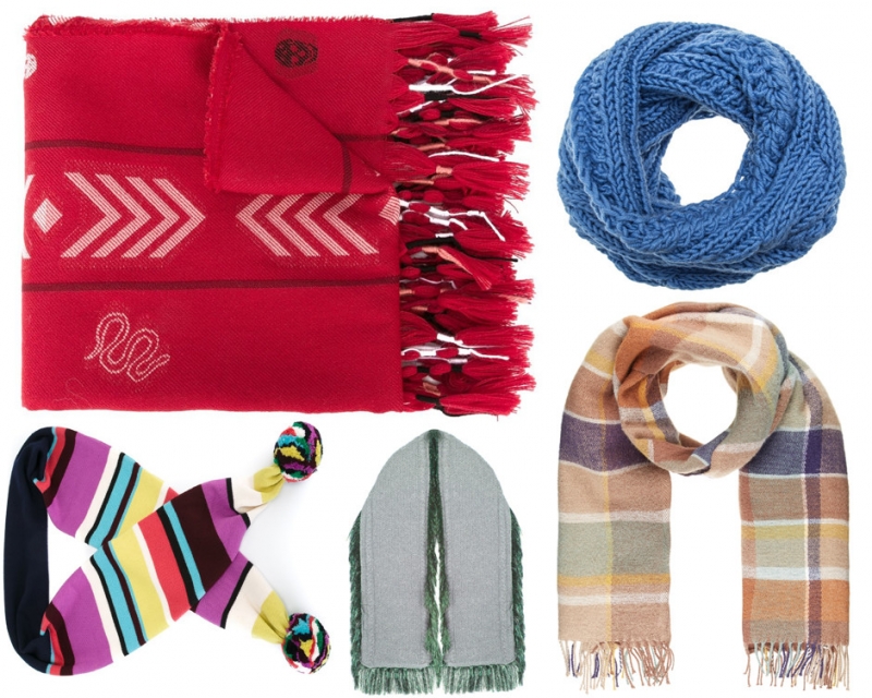 Кисточки, помпоны, этнические мотивы, клетка, яркие цвета, значки… Все, что угодно, только никаких скучных шарфов. Сделайте свою осень яркой.