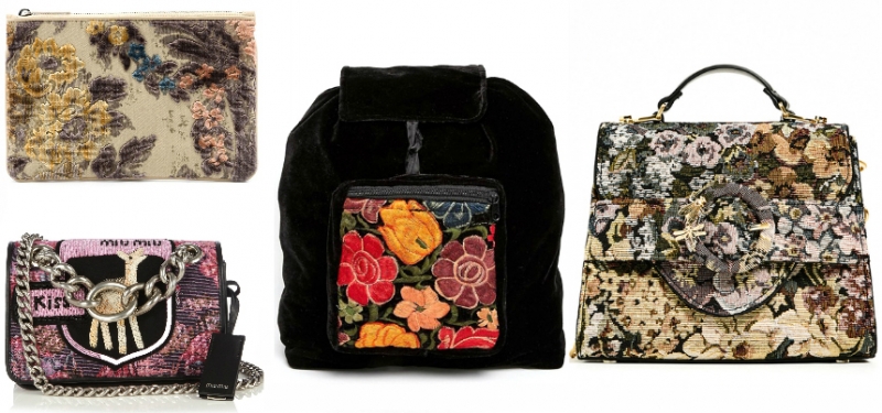 Сумки из гобелена — одна из главных тенденций этого сезона. Вещь сложная и не такая функциональная, как обувь из похожего материала. С другой стороны, кто сегодня строго следит за совместимостью? В данной ситуации как раз и стоит подбирать вещи, не соответствующие этой «роскоши». Например, аккуратный гобеленовый ридикюль будет классно смотреться в компании с обрезанными прямыми джинсами, тренчем или oversize-пальто. Подбирать сумку в тон к обуви в данной ситуации также не стоит, ограничьтесь чем-то одним.
