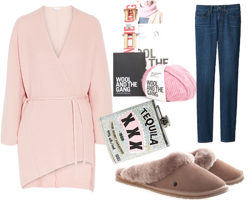 Домашний кардиган EresНабор для вязания Wool & The Gang DIY LilТермоджинсы UniqloФляжка SkinnydipТапочки EMU AUSTRALIA (Aizel)