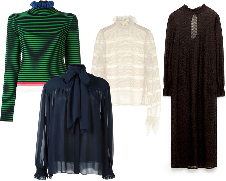 Кружевные платья и блузы с характерным высоким воротом — тенденция, которую уже невозможно игнорировать. Вещи, инспирированные Викторианской эпохой, представлены абсолютно в каждом магазине: масс-маркет, бренды среднего класса и совсем тяжелый люкс, как с цепи сорвались. Что касается материалов, тут дела тоже обстоят прекрасно: кружево и шифон, бархат и шелк, хлопок и даже замша. Чего уж там, трикотажные водолазки и те стилизованы под викторианские силуэты. Особенно эффектно смотрится сочетание фактурного, бархатного костюма и кружевной блузы с пышными манжетами.