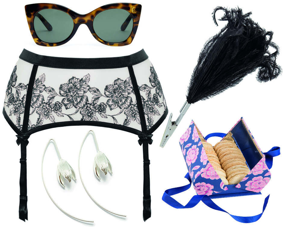 Очки Le Spec3 030 руб.Брошь Christopher Kane (Aizel) 2 310 руб.Пояс для чулок Incanto2 499 руб. Набор из 12 макарон Laduree2 900 руб.Серьги Wisteria Gems (Poison Drop)2 100 руб.