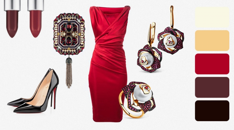 Согласно восточному гороскопу 2017 год нужно встречать в красном. И если раньше в вашем гардеробе не было ничего ярче нежно-розового — самое время обзавестись нарядом алого цвета. К такому наряду можно подобрать ювелирные изделия в тон. Камни будут играть на свету, демонстрируя то холодные синие блики, то золотистый блеск, как бокал французского вина, сквозь который мерцают огни новогодней ночи. Но можно пойти и более смелым, а оттого интересным, путём, надев украшения с контрастными по отношению к платью вставками.