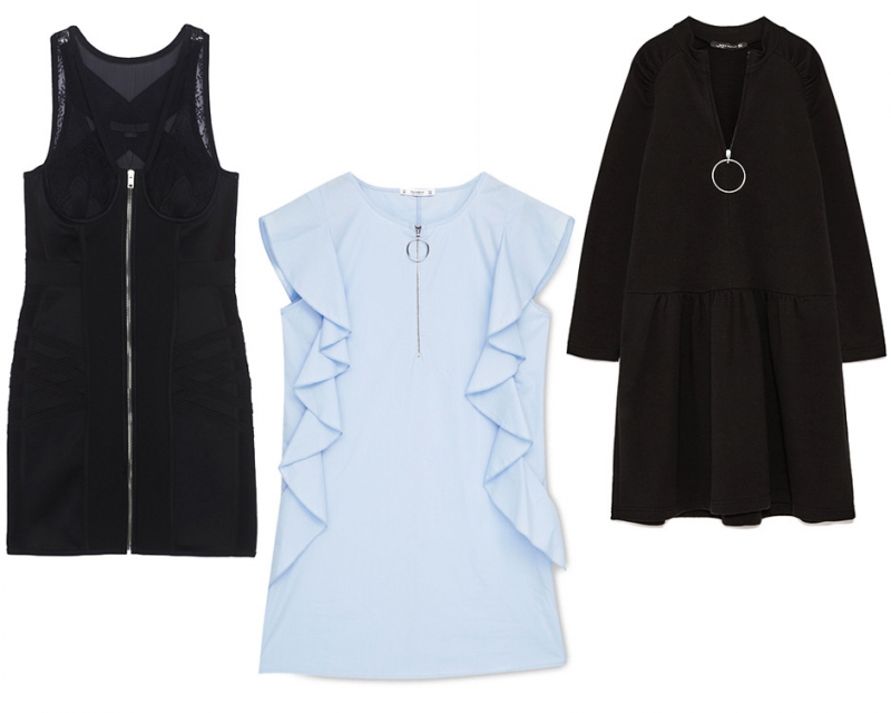Помните, прошлой осенью были популярны свитеры а-ля лыжник из 70-х? С горлом и короткой молнией. Ну так вот, эта деталь остается с нами весной, но переносится на платья самых разных фасонов. В нашем вооружении платья-рубашки, приталенные, макси, миди декорированы молнией. Лучшая обувь под такие модели — спортивные сандалии, но поскольку в ближайшее время их нам точно не представится возможности носить, сочетайте платья с кроссовками и яркими колготками.