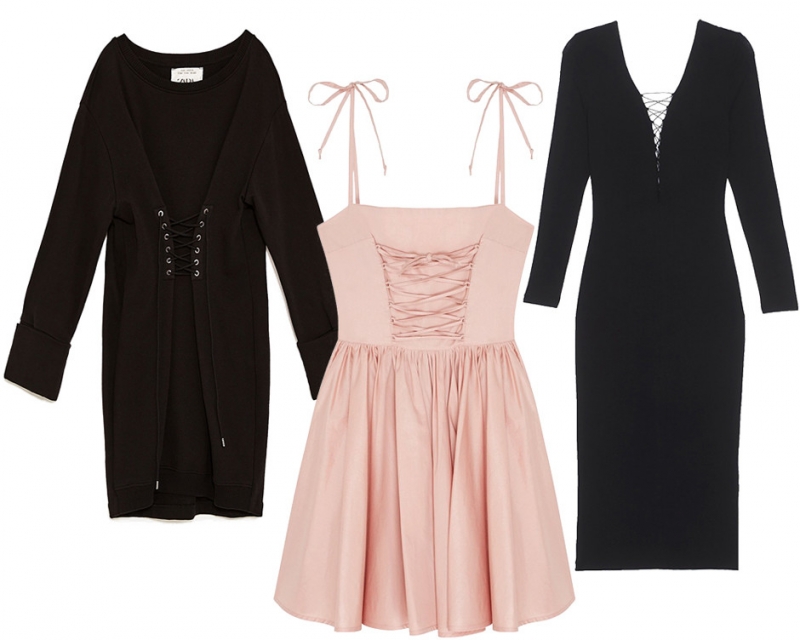 Корсет — главный аксессуар сезона Весна-Лето 2017. Его носят поверх пальто, футболок, толстовок и рубашек. Если у вас с этой деталью отношения не ладятся: он съезжает, перекручивается и деформирует ваше платье, то платья с «встроенным» корсетом улучшат ситуацию. Платья с V-образным вырезом и шнуровкой были главными хитами прошлого лета. Свою популярность они, может, и растеряли, но менее эффектными от этого не стали.
