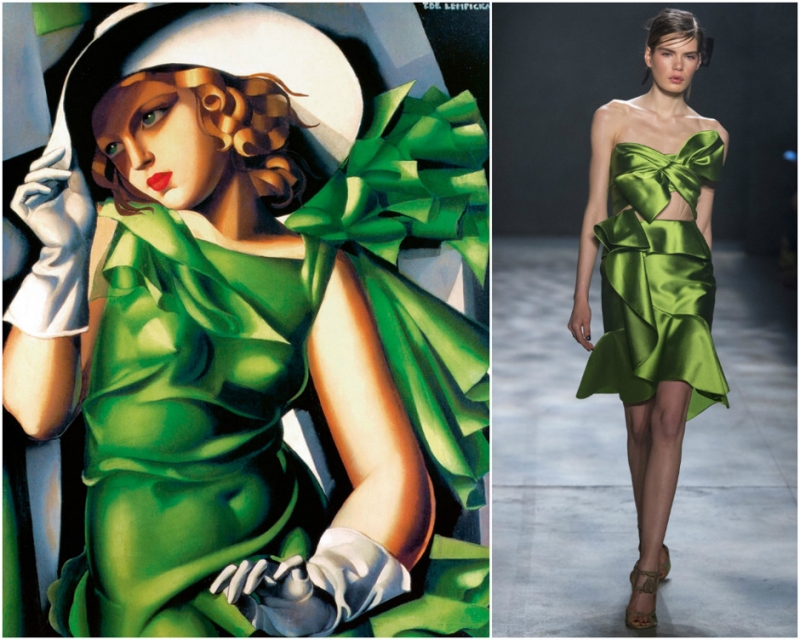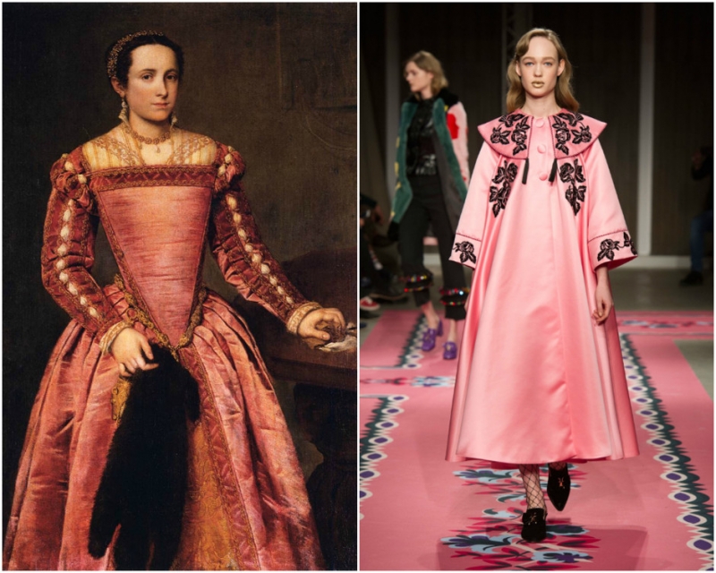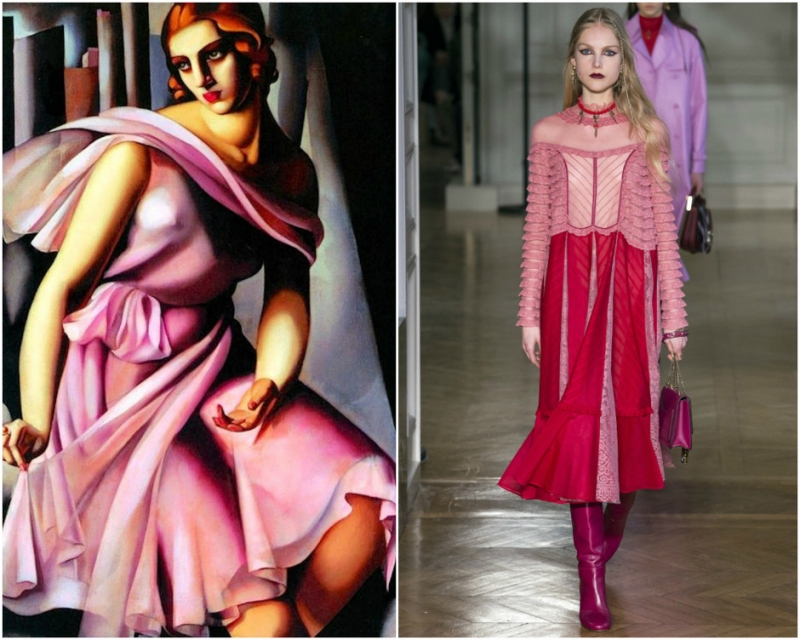 «Женщина в красном платье». Джованни Баттиста Морони. Образ из коллекции Vivetta. «Тщеславие». Огюст Тульмуш. Образ из коллекции Gucci. «Портрет Романы де Ла Саль». Тамара де Лемпицка. Образ из коллекции Valentino.