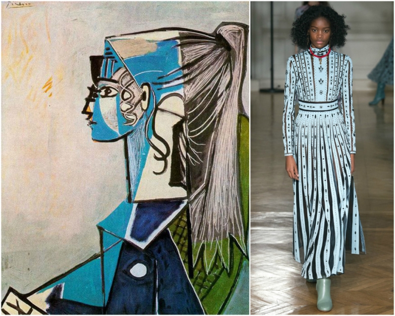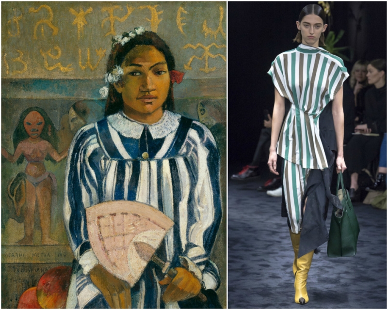 «Портрет Сильветт Давид в зеленом кресле». Пабло Пикассо. Образ из коллекции Valentino. «Предки Техаманы». Поль Гоген. Образ из коллекции Loewe.