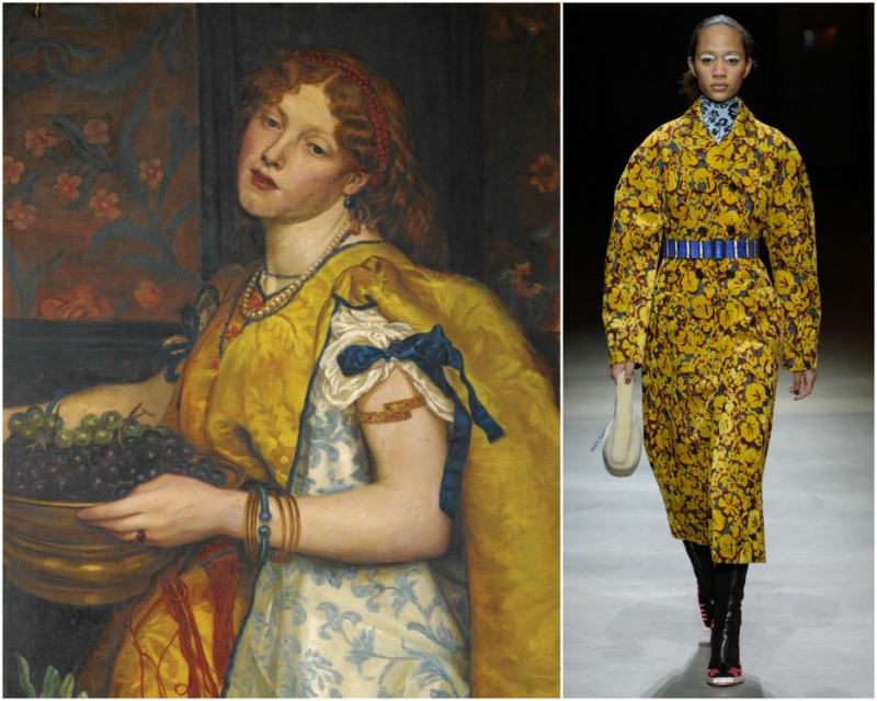 «Рождественская песня». Данте Габриэль Россетти. Образ из коллекции Anna Sui. «Девушка, несущая виноград». Валентин Камерон Принсеп. Образ из коллекции Kenzo.