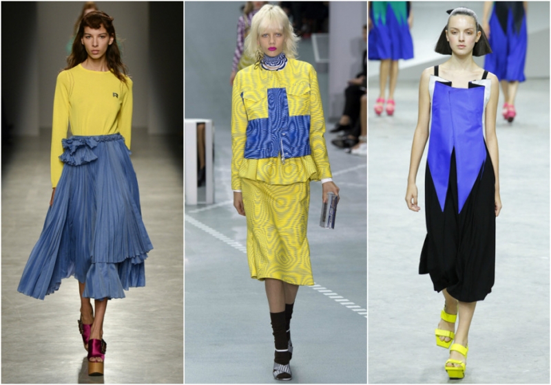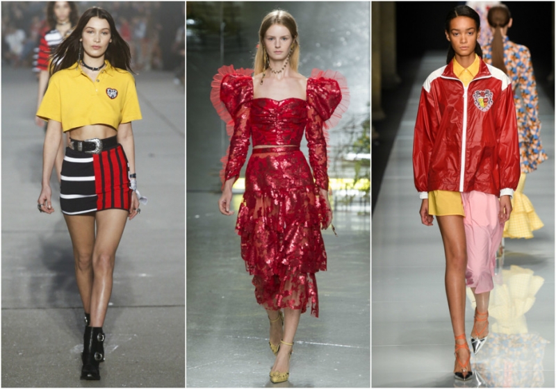 Самый смелый цветовой микс весенних показов — это комбо красного и желтого. Образов в таких оттенках было не так чтобы очень много, но все они были запоминающимися. Интереснее всего в такой гамме выглядят вещи в спортивном стиле: куртки, поло, кроссовки, короткие теннисные юбки и козырьки. Соединять только желтый и только красный лучше не стоит. Здесь обязательно нужен нейтральный цвет: темно-синий, черный. Впрочем, на показе Rodarte решили обойтись без этой скромности: модель вышла на подиум в блестящем красном платье и желтых туфлях. В принципе, для тематической вечеринки такое сочетание может и сгодится.