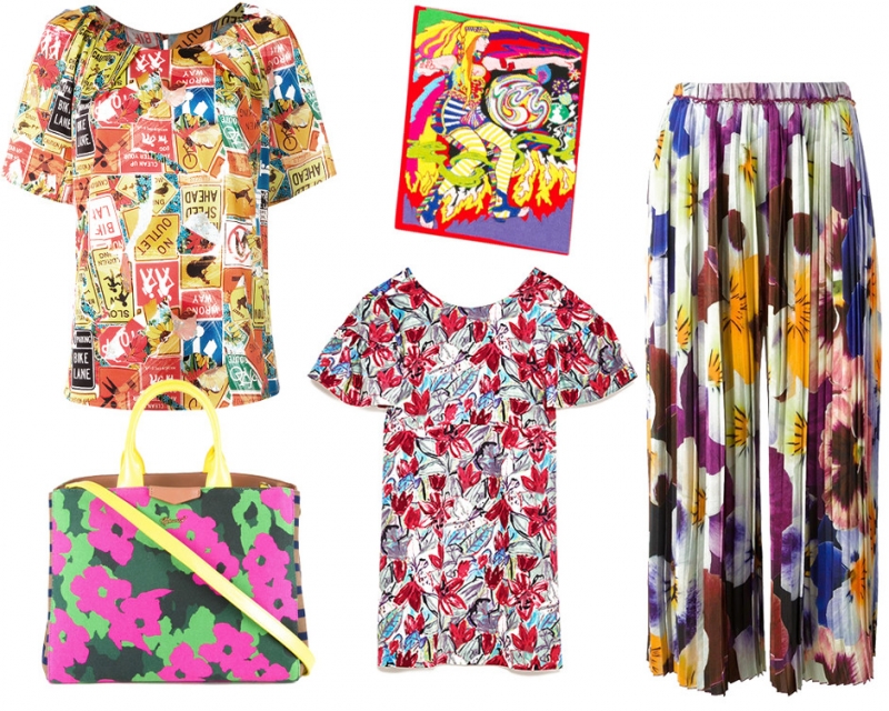 Мелкие, пестрые принты — явление моды 60-х. Собственно, вещи и аксессуары, украшенные разнообразными рисунками, — самый простой путь сделать образ ярче. Тут уже и цвета друг с другом скомбинировали и вообще все придумали за вас. Самые актуальные принты этого сезона — россыпи мелких разноцветных цветов. Кроме того, чем больше пестроты будет в образе, тем лучше. Оттенки выбирайте самые яркие: так, чтобы в глазах аж рябило. Унылые серые розочки на черной футболке не годятся. Обувь тут стоит выбирать нейтральную, а вот сумка как раз может быть пестрой.